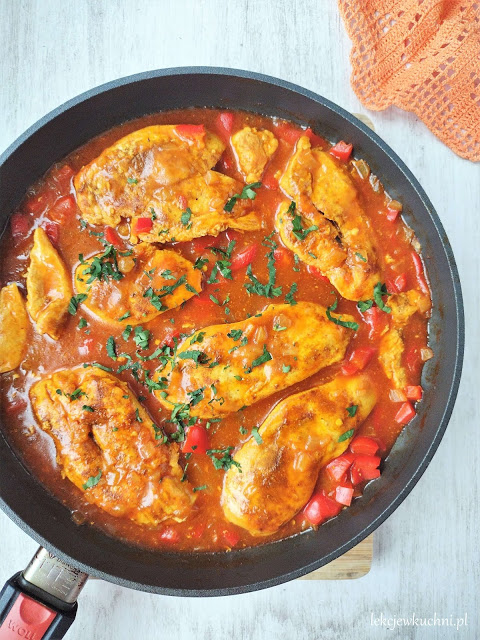 Kurczak w sosie pomidorowym z curry i papryką Jeśli nie macie pomysłu…