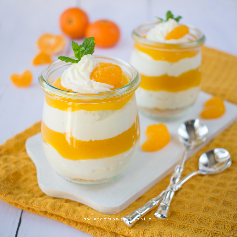 Lekki, puszysty deser, z dodatkiem rzadko używanych do deserów owoców – mandarynek.…