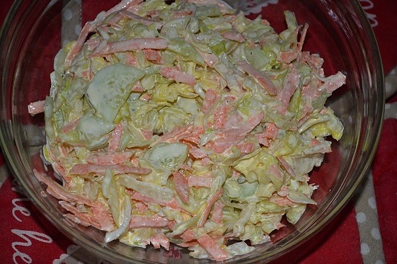 Kolejna moja pyszna, prosta i chrupiąca sałatka. Idealna do obiadu jak i do dań z grilla. Dodatek chrzanu do sałatki super podkreśla smak warzyw.