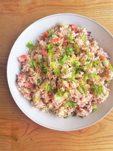 Dziś błyskawiczny przepis na pyszną i pożywną sałatkę ryżową z tuńczykiem. Sałatkę. można wzbogacić o inne ulubione warzywa, a także jajka lub ulubione świeże zioła. Polecam nie tylko na spotkania w większym gronie, smacznego:)