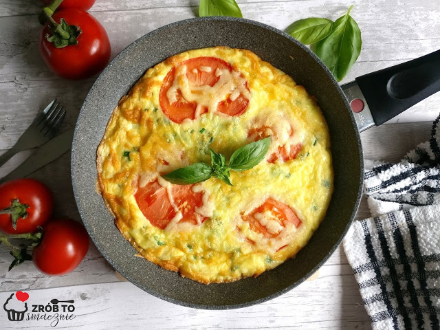 Frittata to nic innego jak masa z jajek, zapiekana ze wszystkim tym na co tylko mamy ochotę. Mogą to być warzywa, szynka, ser, mięso. Zazwyczaj przygotowuję ją z tym co zalega mi w lodówce 🙂 Tym razem proponuję frittatę z kukurydzą konserwową, szczypiorkiem i pomidorami a całość delikatnie posypana żółtym