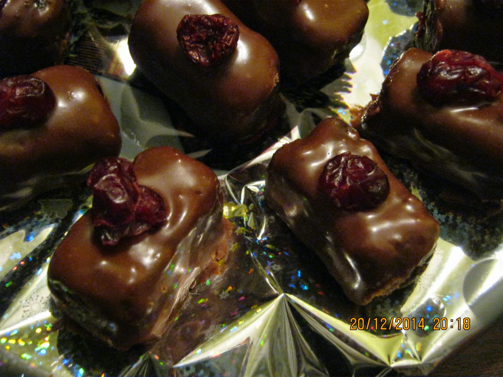 Składniki:125 g czekolady deserowejgrudka masła100 g herbatnikówspora garść żurawinyłyżka kremówki2 łyżki likieru…