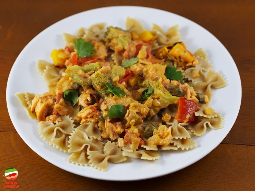 Makaron farfalle czy też popularne w Polsce kokardki dobrze komponują się z…