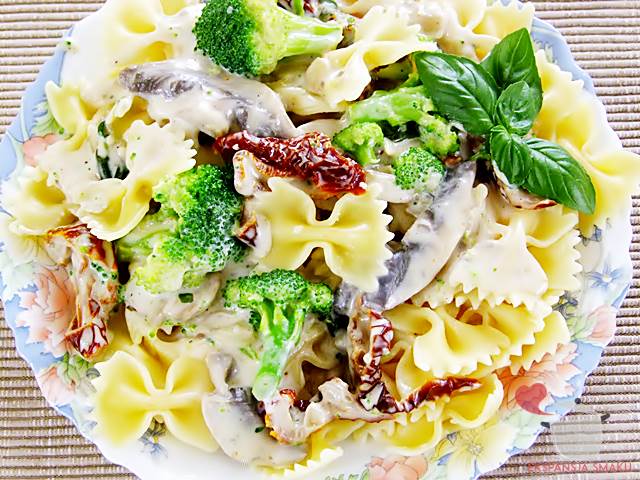 (adsbygoogle = window.adsbygoogle || []).push({}); Makaron z sosem pieczarkowym i brokułami okraszony…