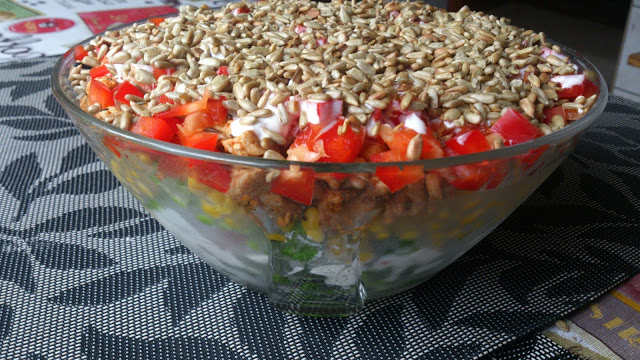 Za oknem zimno, wieczory są dłuższe i mam nadzieję, że jak jak ja macie więcej czasu na przeglądanie przepisów, a potem na kucharzenie :D.Przedstawiam przepis na sałatkę warstwową z brokułem, kurczakiem, papryką, fetą oraz kukurydzą i pomidorem, po prostu pycha ^^ i pięknie wygląda 🙂