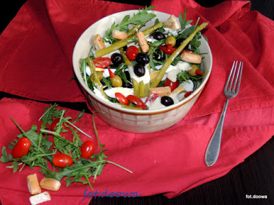 Mamy dzisiaj pyszną sałatkę, treściwą i pożywną.Użyłam tutaj szparagów ze słoika, oliwek…