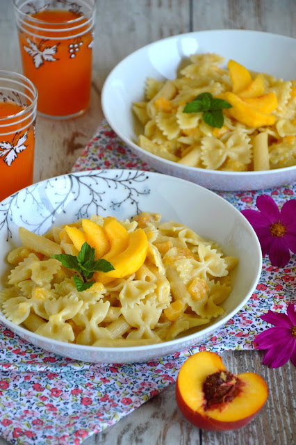 Makaron w sosie brzoskwiniowym