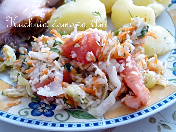 Wariacji na temat kapusty ciąg dalszy… Cukinia w tej surówce nada jej soczystości! Pyszności! Całość jest rewelacyjna, szczególnie składniki sosu robią tu bardzo dobrą robotę. Kapustę starłam na tarce jarzynowej, ale równie dobrze można ją poszatkować. Surówka godna polecenia i z pewnością zrobię ją jeszcze nie raz!