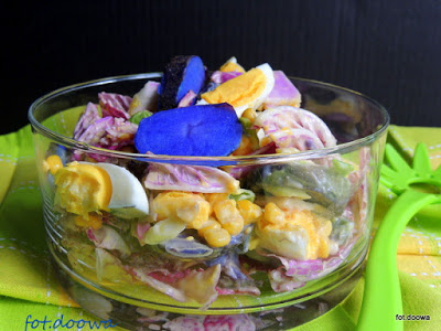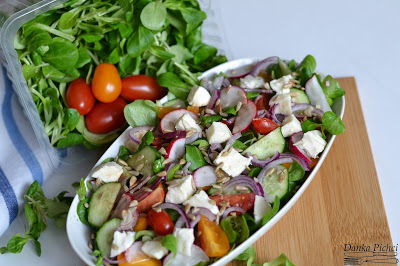 Często zamiast kanapek na kolację lubię przygotowywać sałatki z dużą ilością warzyw. Po takie kompozycje sięgam zazwyczaj w okresie wiosenno-letnim, kiedy mam świeże warzywa z własnego ogródka. Dzisiejsza moja sałatka z dodatkiem rukoli i roszponki to doskonały pomysł nie tylko na kolację, ale można ją zapakować w pudełeczko i zabrać