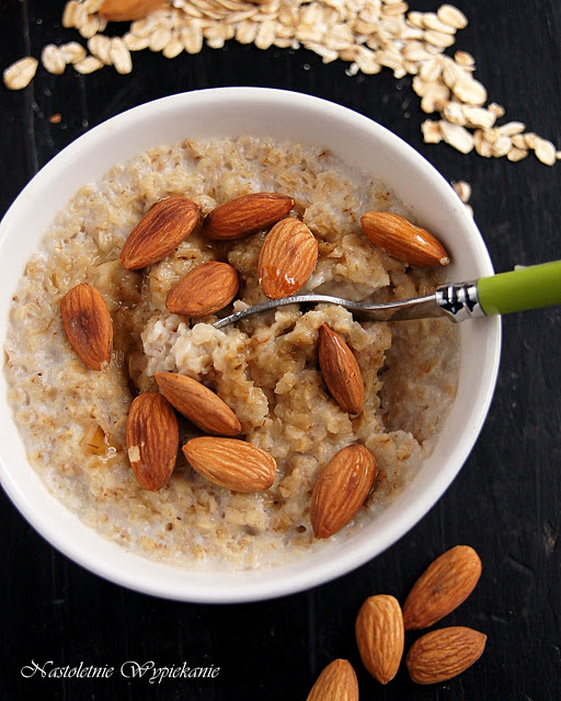 Kolejna odsłona niezastąpionej owsianki- na mleku migdałowym z syropem klonowym i podprażonymi…