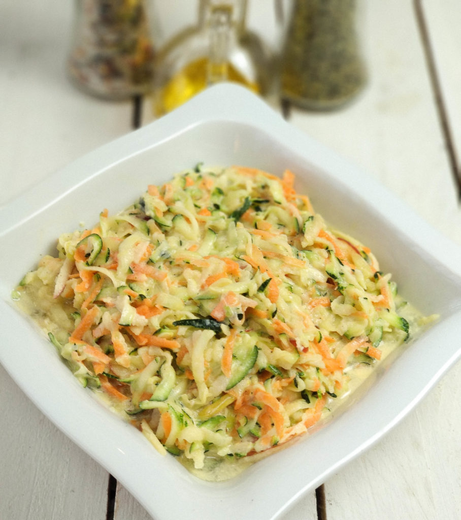 Pyszna surówka do obiadu, gdzie głównymi składnikami są cukinia, jabłko i marchewka, jest bardzo prosta i szybka w wykonaniu a do tego wyjątkowo smaczna. Przy okazji przepis na surówkę z cukinii marchewki i jabłka to ciekawy pomysł jak można na co dzień