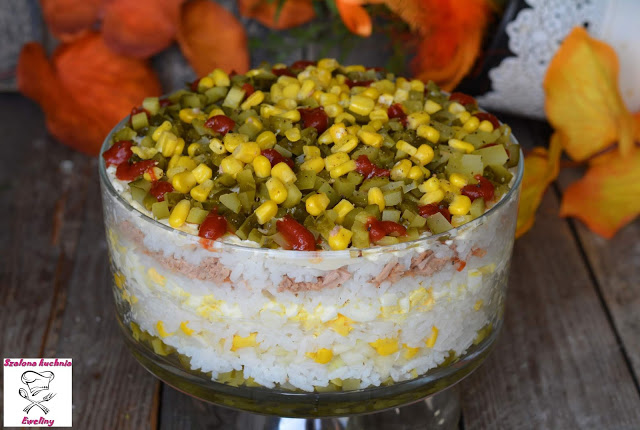 Warstwowa ryżowa sałatka z tuńczykiem