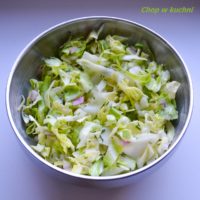 Łazanki z młodą kapustą – składniki:1 duża główka młodej kapusty2 cebule3 marchewki800 g kiełbasy500 g makaronu łazanki3 łyżki