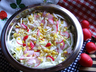 Kapusta pekińska z rzodkiewką i kukurydzą. Szybka, smaczna surówka.