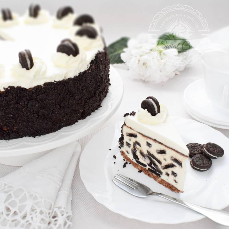 Dziś zaproponuję idealne ciasto na lato. Smaczny i efektowny, czarno-biały sernik na zimno, na chrupiącym spodzie, z dodatkiem kawałków ciasteczek Oreo, zatopionych w masie serowej – wykończony delikatną warstwą bitej śmietany.