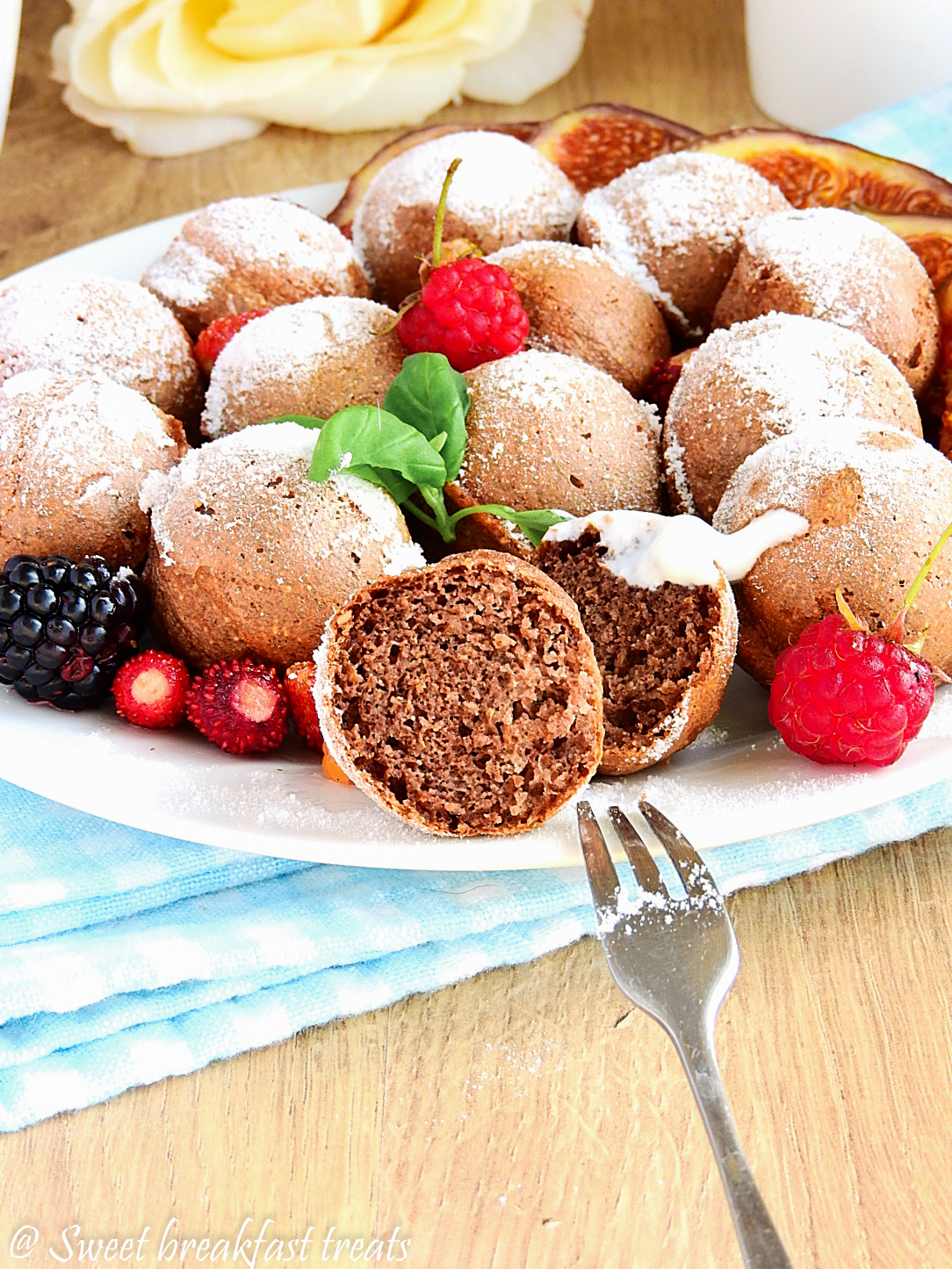 Kawowe ebelskivers, czyli miniaturowe pączki wywodzące się z Danii,jednak w bardzo zdrowej…