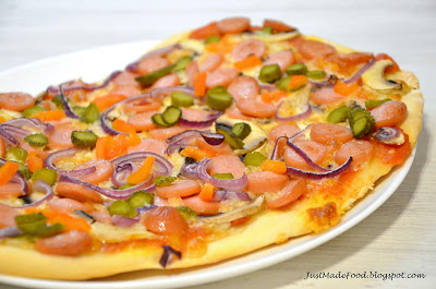 Pizza z parówką. Można by powiedzieć, że to już wymyślanie, jednak wierzcie mi- ta pizza jest naprawdę mega! Parówka na pizzy to świetny pomysł! Proste składniki na chrupiącym cieście, i wyszła pyszna uczta.