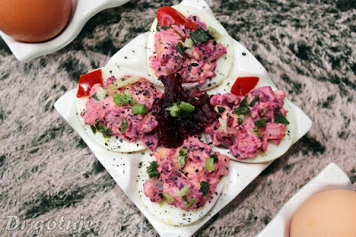 Jajka faszerowane buraczkami i śledziem