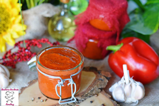 3kg czerwonej papryki4 ostre papryczki chilli4 główki czosnku300g cukru250ml octu250ml oleju800g koncentratu pomidorowego15g suszonej bazylii1 łyżeczka kolendry w