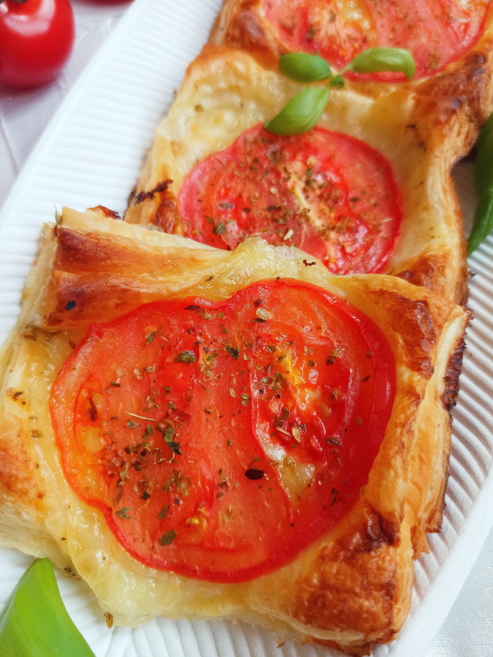 Ciasto francuskie z pomidorami i mozzarellą to zachwycająca smakiem i wyglądem przekąska…