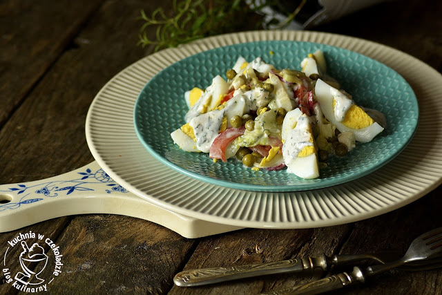 Dziś polecam Wam pyszną sałatkę warzywną z dodatkiem jajka i sosu koperkowego…