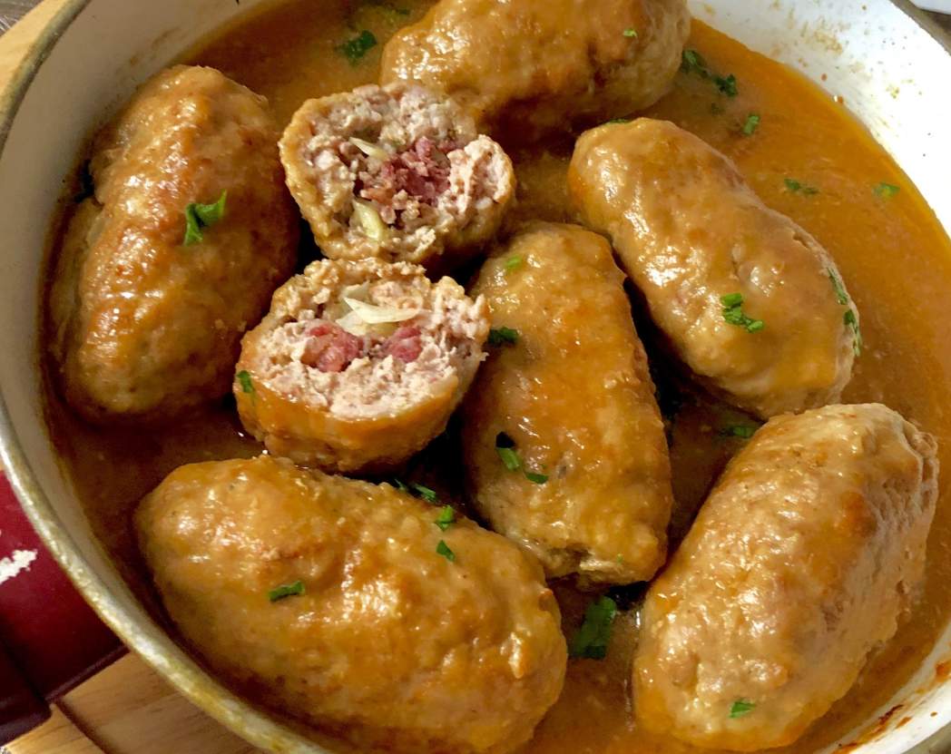 Mięciutkie i soczyste roladki z mięsa mielonego wypełnione pysznym farszem i duszone w aromatycznym sosie. Świetny pomysł na smakowity obiadek!