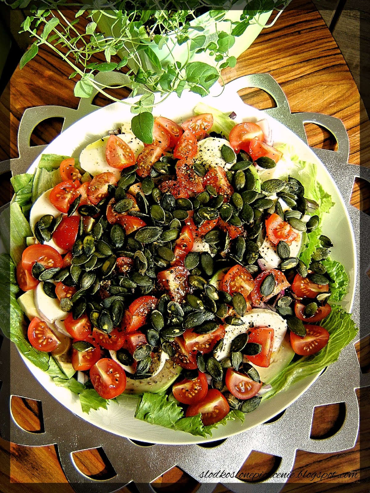 Lekka, pożywna sałatka z awokado, pomidorkami koktajlowymi i mozzarellą. Sałatka z awokado…