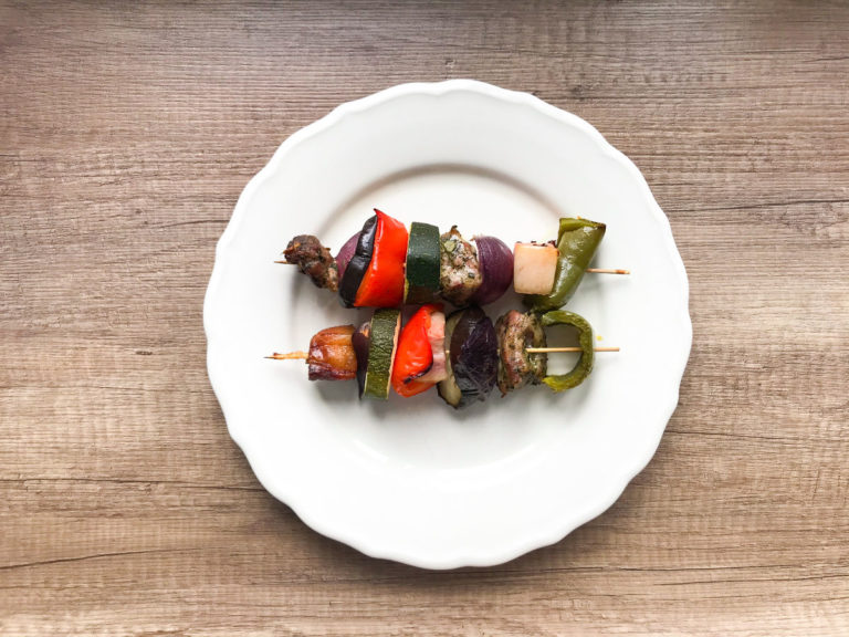 Szaszłyki z karkówką, boczkiem i warzywami