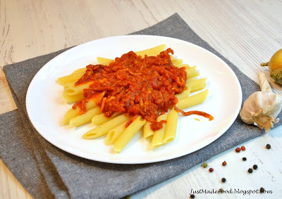 Dziś trochę eksperymentowania w kuchni. A mianowicie do sosu pomidorowego, jako podstawę użyłam hiszpańskiej szynki serrano. Jest to specyficzna w smaku, podsuszana szynka, produkowana w konkretnych częściach Hiszpanii. Smak całego dania był dla mnie pozytywnym zaskoczeniem. Do tego, smak pomidorów jest teraz naprawdę pyszny i warto z nich