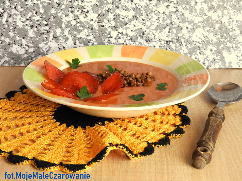 Dziś szybko i pożywnie, będzie smakowało wszystkim wielbicielom pomidorówki i groszkowego kremu również.