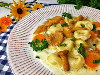 Następny pomysł na danie z kurkami. Zupka 🙂 Bardzo smaczna a dodatek tortellini podkreśla jej atrakcyjność.
