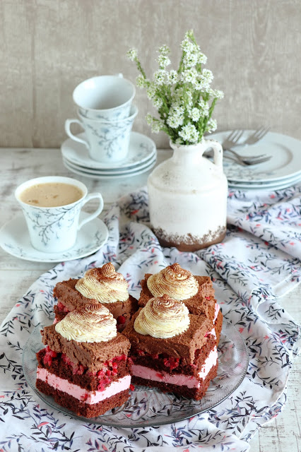 To zdecydowanie idealne ciasto na urodziny w lecie. Lekko kwaśna czerwona porzeczka przełamuje słodycz kremu czekoladowego. Ciasto można również upiec poza letnim sezonem, bo do jego przygotowania można wykorzystać mrożone owoce. Ciasto piekłam na urodziny taty. Podeszłam do tematu bardzo luźno. Na pewno chciałam wykorzystać czerwoną porzeczkę i