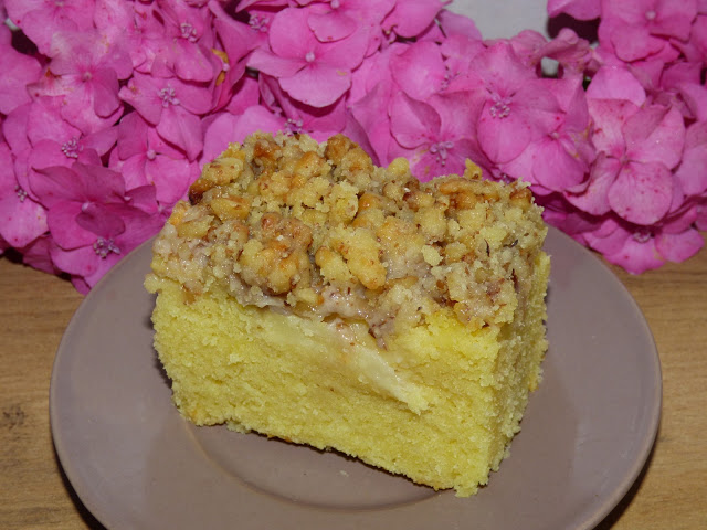 Miękkie, puszyste ciacho z kawałkami jabłek, pokryte niesamowicie pyszną kruszonką orzechową. Życzę smacznych wypieków 😊