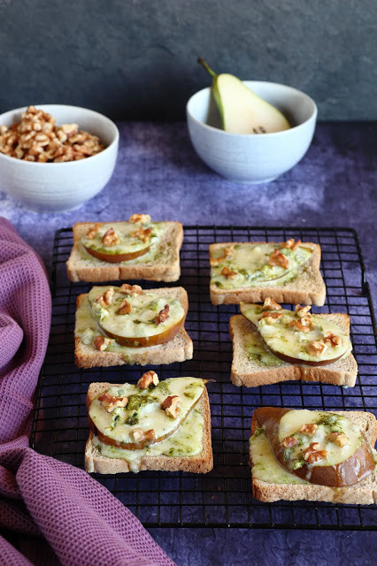 Tosty z gruszką, gorgonzolą i orzechami włoskimi