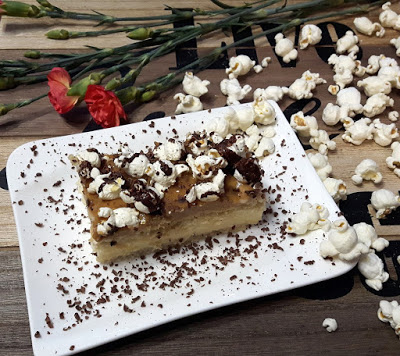 Popcornowa pokusa to ciasto bazujące na napoleonce, ale z pewnym urozmaiceniem…słodkim kajmakiem…
