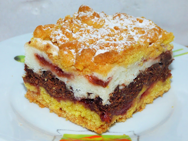 Jadłam już kilka wersji tego ciasta z jabłkami lub powidłami, ale z wiśniami jak dla mnie jest najlepsze. Zapraszam do spróbowania przepisu kochani. Przepis dostałam od koleżanki mojej mamy, dziękuję 🙂
