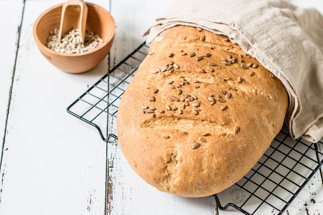 Domowy chleb mieszany składa się z mąki pszennej, orkiszowej i owsianej, jest…