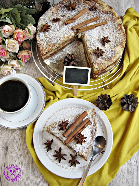 Deser błyskawiczny w przygotowaniu i bardzo zaskakujący, ponieważ oprócz jabłek nie ma w nim mokrych produktów. Masło nadaje ciastu niezwykle maślany smak! Aromat cynamonu i wanilii unosi się po całym domu. Polecam do filiżanki gorącej herbaty lub aromatycznej kawy!