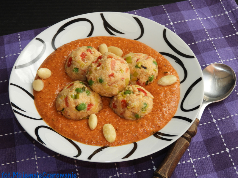 Klopsiki z kaszy jaglanej i pora w sosie pomidorowym