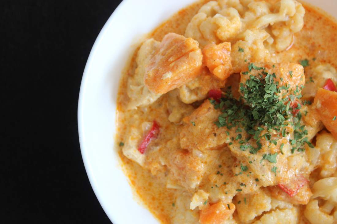Mam słabość do curry i czasami lubię pokombinować ze składnikami. Tym razem miałam do wykorzystania resztę kalafiora i bataty, co zaowocowało drobiowym czerwonym curry z wyżej wymienionymi warzywami. Pyszne i syte. Polecam podawać z