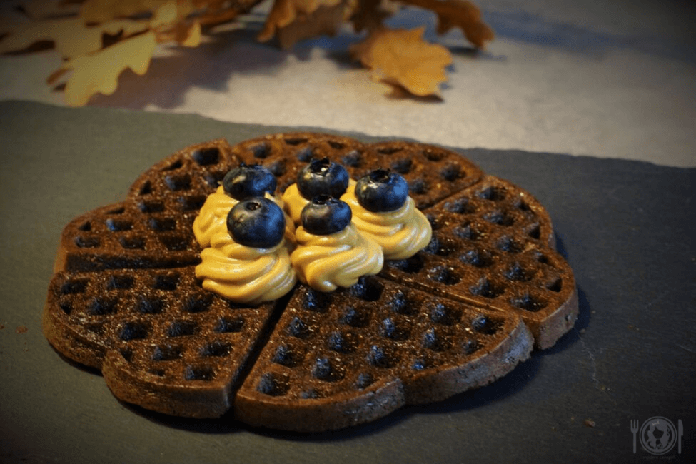 Kolejny przepis na słodkie małe co nieco. Tym razem są to keto gofry kakaowe z kremem kawowym i borówkami. Mogą one posłużyć nie tylko jako deser, ale i przekąskę czy nawet śniadanie. Mają bowiem jedynie 2,5 g węglowodanów netto,