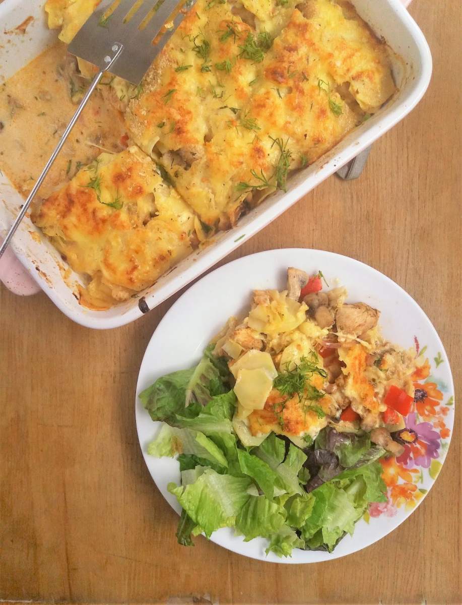 Zapiekanka gyros / Gyros CasseroleW dzisiejszym filmie nauczymy się, jak przygotować zapiekankę gyros. Ziemniaczana zapiekanka z kurczakiem, pieczarkami, papryką i kapustą to wspaniały obiad z piekarnika dla całej rodziny. To sprawdzony