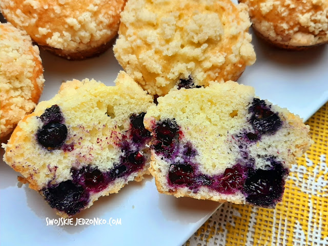 Jak robiliście już moje Ciasto jogurtowe i smakowało,to zdecydowanie zróbcie te babeczki.Są idealnie wilgotne nawet na drugi dzień.Dzięki dodatkowi kruszonki i borówek są mega pyszne,gorąco polecam…..Do kawy idealne……