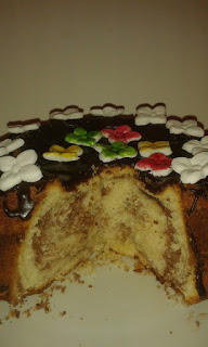Mąka pszenna – 20 dagMąka ziemniaczana –20 dagMasło – 20 dagCukru – 20 dagJajka – 4 sztProszek do pieczenia – 1 łyżeczkaMleko – ¾ szklankiCukier waniliowy – 1 łyżeczkaKakao – 2 łyżkiTłuszcz do formyBułka tarta do formy
