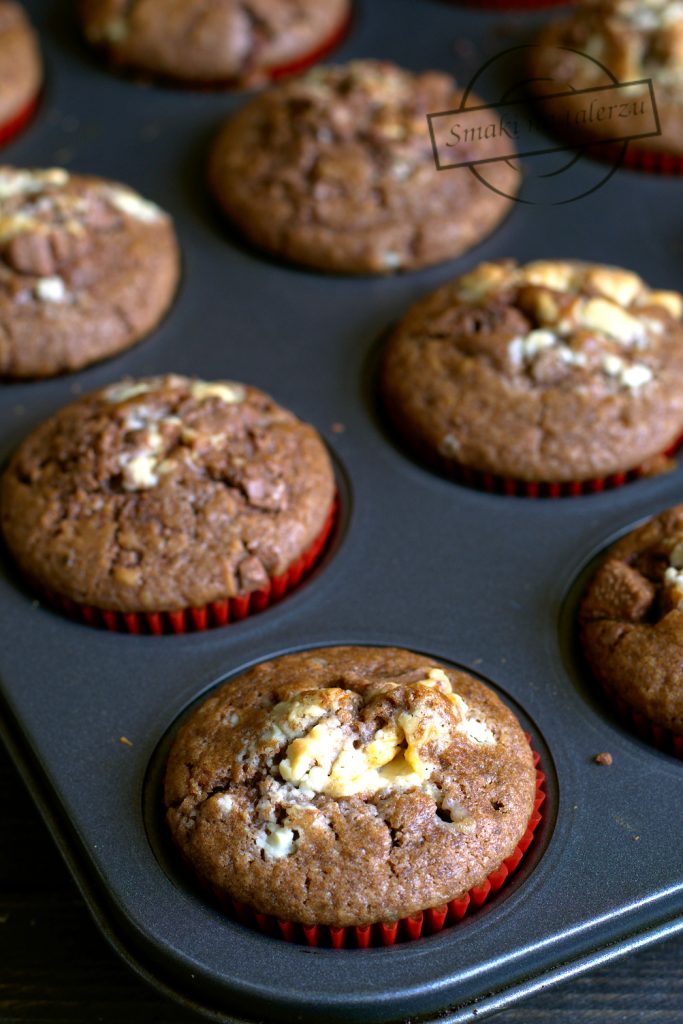 Pyszne czekoladowe muffinki z kawałkami czekolady.
