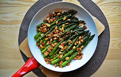 Smażone szparagi z szalotkami, imbirem i orzeszkami ziemnymi