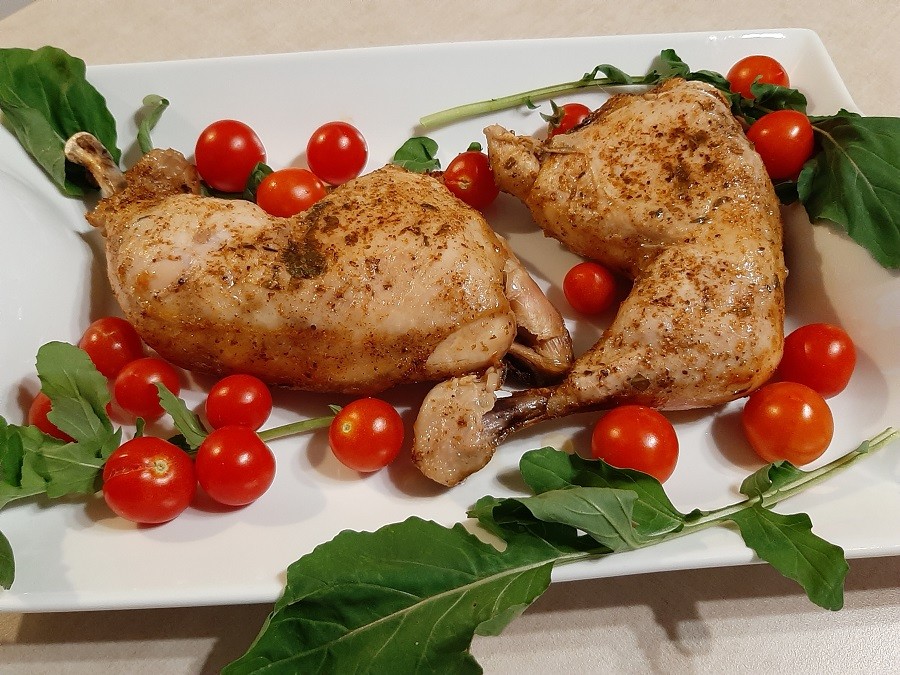 Soczyste udka z kurczaka w sosie własnym. Można podawać z sałatką, ziemniakami,…