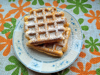 Zapraszam na smaczne gofry z dodatkiem musu dyniowego. Szybkie w przygotowaniu i mają super żółty kolorek. Podajemy z ulubionymi dodatkami lub z cukrem pudrem.