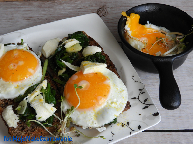 Szpinak w tej postacie jest pyszny i zdrowy, jajo to ulubiony składnik śniadaniowy.
