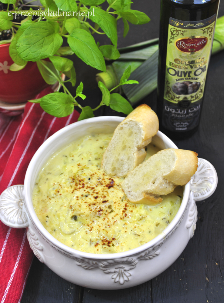Zupa porowa z czosnkowymi grzankami